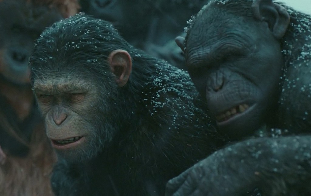 In the Planets of the Apes series, reboot or otherwise, you’ll be hard-pressed to find any of the adult hero chimps, even slightly melanin; the villains, on the other hand, are always darker. Why is that?